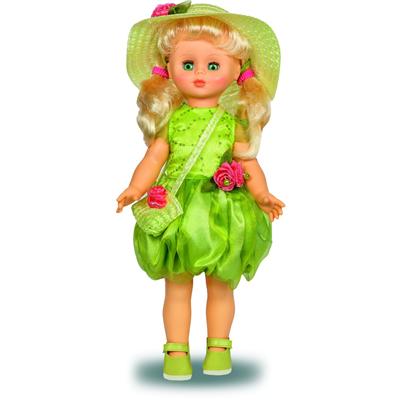 В комплект одежды входит: платье из шёлка и органзы, шляпа, плетённая «под соломку». Комплект дополняют туфли. При нажатии на звуковое устройство, вставленное в спинку, кукла произносит фразы.